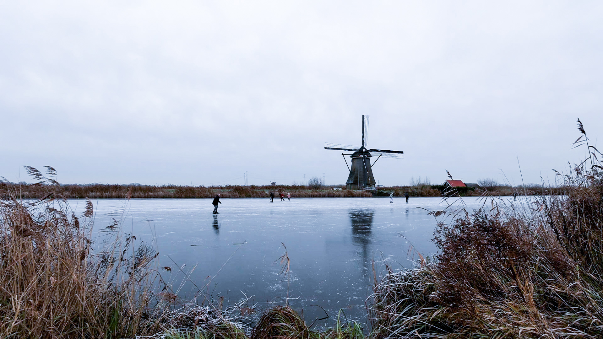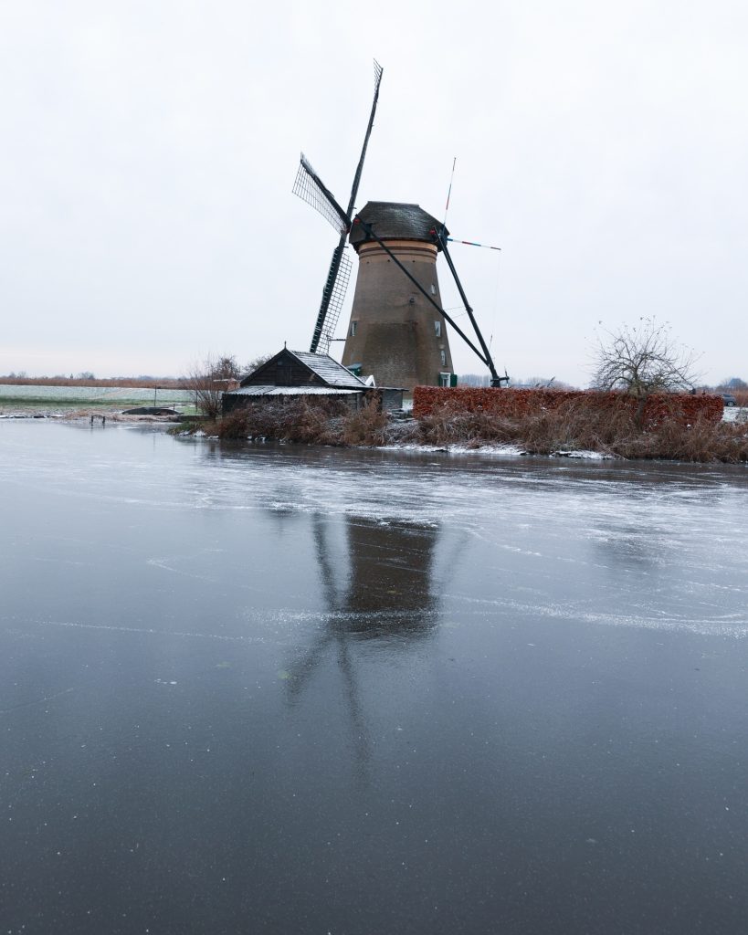The third weekend of December 2022 seemed to be the time after all. I was visiting the windmills of Kinderdijk and saw with great joy that the water had frozen and people were ice skating on the ice. What a beautiful sight to see!