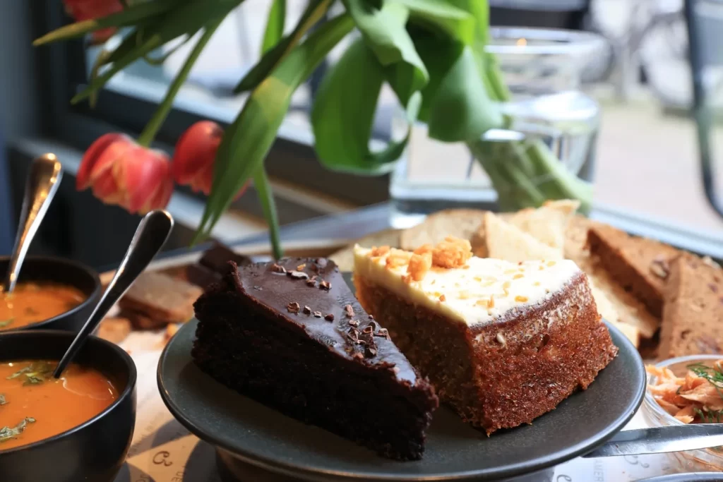We zaten op een plek bij het raam waar we gezellig bij konden kletsen en ondertussen een mooi uitzicht hadden op de Haagse buurt. Het zonnetje scheen naar binnen, wat een aangename sfeer gaf. We namen ontspannen de tijd en hadden niet het gevoel dat we ons hoefden te haasten.