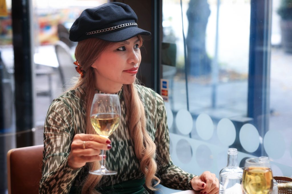 Bij elke gang kregen we een bijpassende thee geserveerd. De verschillende soorten thee pasten goed bij de gerechten. De reden waarom ze thee in een wijnglas serveren is, omdat je dan geen verschil ziet tussen mensen die wijn drinken of mensen die thee drinken. Ik vind dit een geniale oplossing, omdat ik vaak een kop warme thee drink tijdens een het eten en op deze manier geeft het wat extra allure.