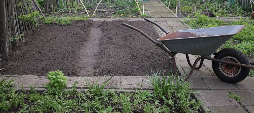 De maand maart stond in het teken van opruimen en voorbereiden. De moestuin lag er na de winter verwaarloosd bij, met bladeren, takken en hardnekkig onkruid dat gewied moest worden. Na het grondig schoonmaken en verwijderen van obstakels, heb ik een laag compost over de moestuin verspreid. Deze compost, rijk aan organische voedingsstoffen, zal de bodem voeden en het bodemleven stimuleren.