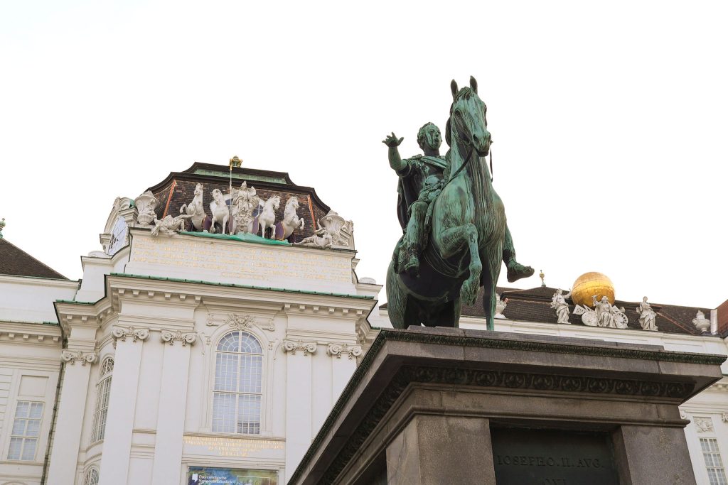 - Sta op het binnenplein Josefsplatz, omringd door de gevels van de Hofburg, met in het midden een ruiterstandbeeld ter ere van keizer Jozef II.