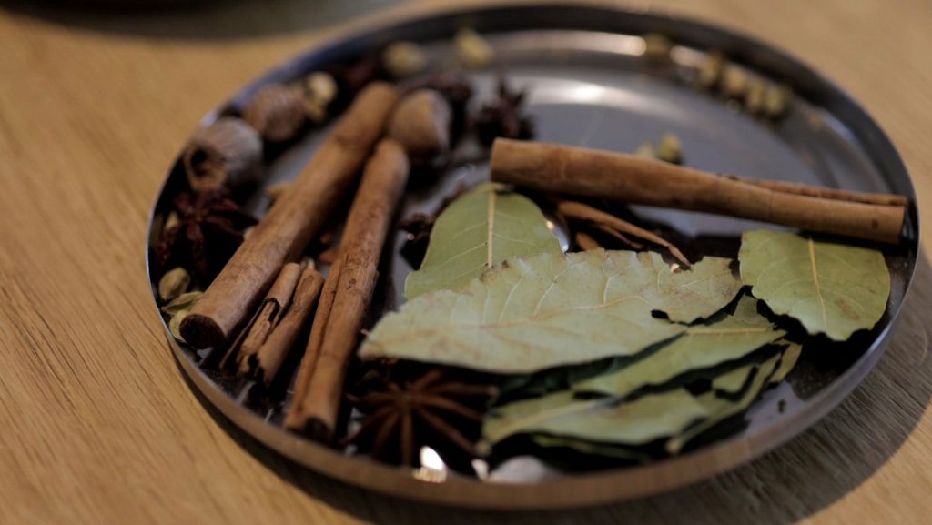 In zowel de Ayurveda als de vedische keuken wordt met zes smaken gekookt; zoet, zuur, zout, bitter, scherp en wrang. In een recept zie je dat alle zes de smaken weer terugkomen.