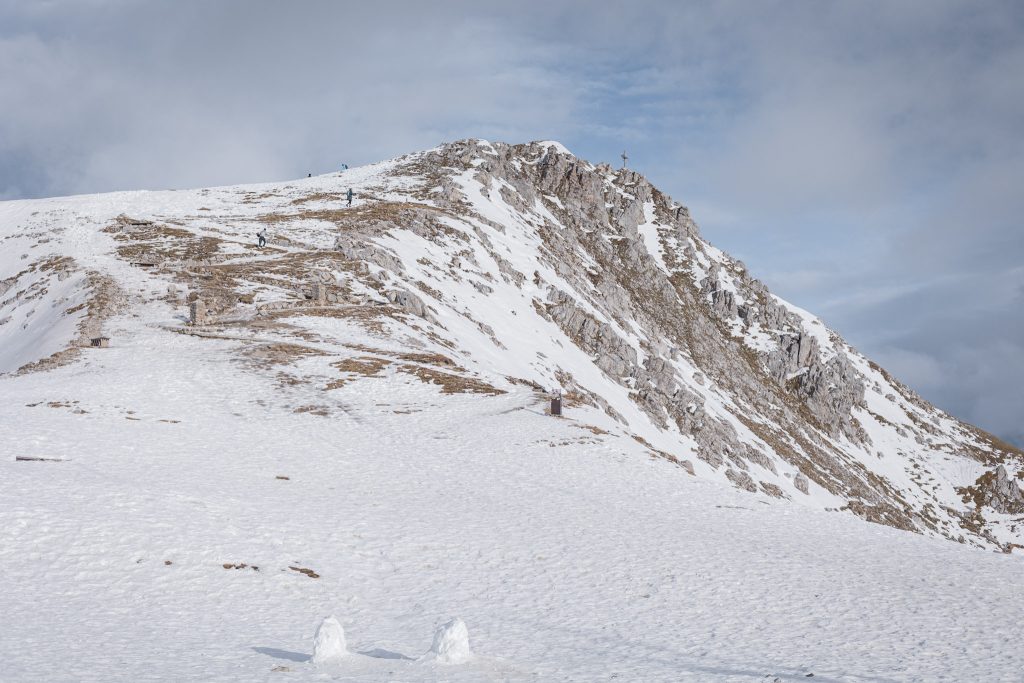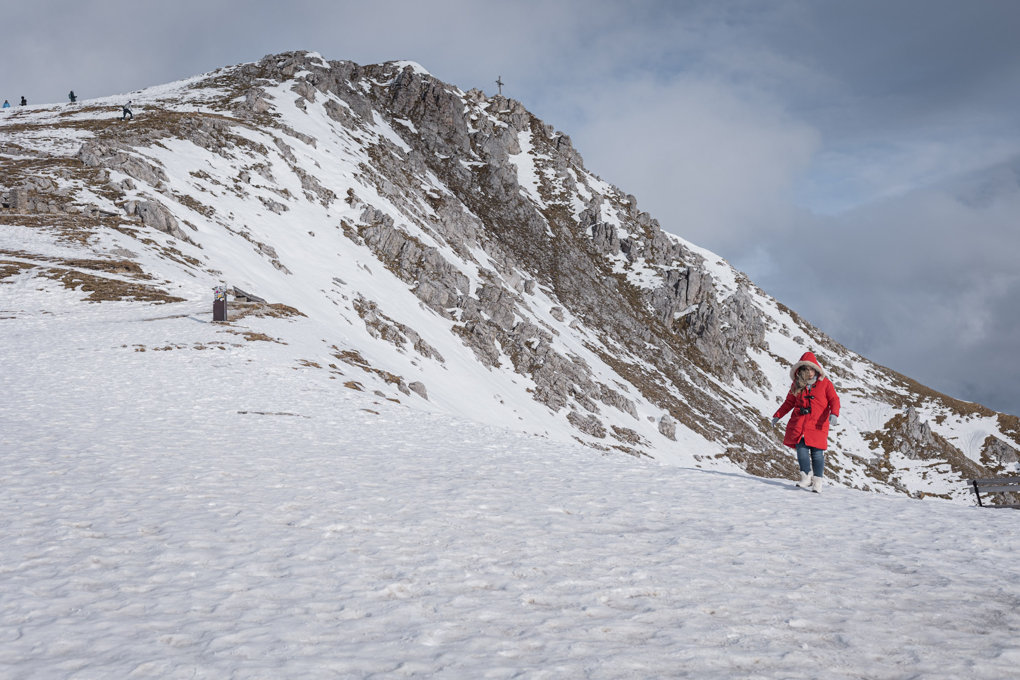The actual peak is a bit higher. You can walk the last part up to the summit. It can be slippery due to snow, so sturdy shoes are recommended.